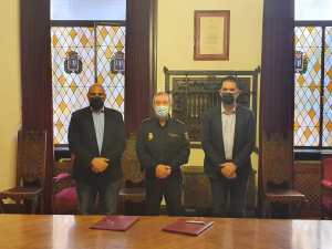 El segundo teniente de alcalde en el Ayuntamiento de Alcalá de Henares y presidente del Organismo Autónomo Ciudad Deportiva Municipal, Alberto Blázquez, y el comisario principal de la Comisaría de Policía Nacional de Alcalá de Henares, Gumersindo Vila, han firmado en la mañana de hoy un convenio para la utilización por parte de los funcionarios y funcionarias del cuerpo de Policía Nacional de las instalaciones deportivas municipales.