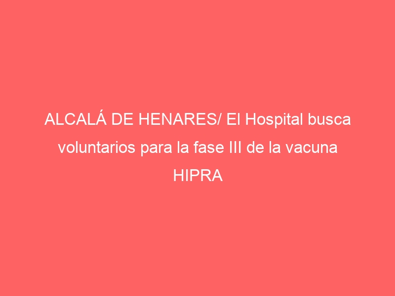 ALCALÁ DE HENARES/ El Hospital busca voluntarios para la fase III de la vacuna HIPRA