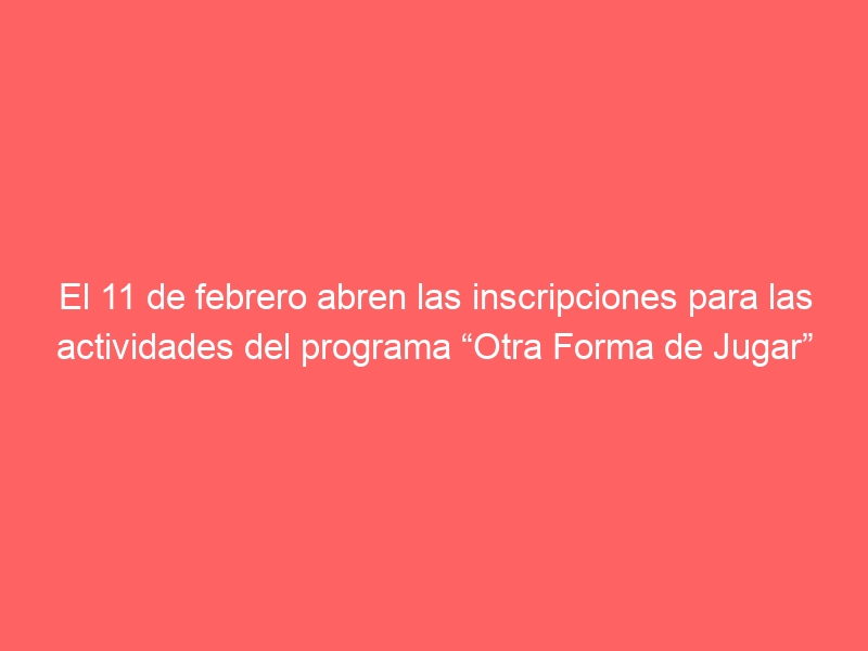 El 11 de febrero abren las inscripciones para las actividades del programa “Otra Forma de Jugar”