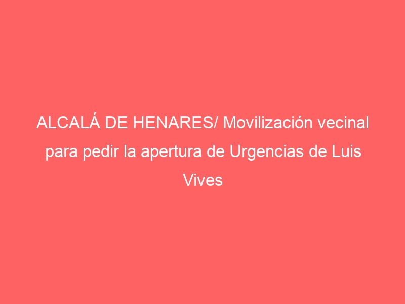 La Asociación de Vecinos Reyes Católicos del D-II de Alcalá de Henares, con el apoyo de diversos partidos, sindicatos y asociaciones, ha convocado una manifestación para el próximo día 23 de febrero para denunciar la situación de la Atención Primaria en la localidad y en la región y reclamar la reapertura del Servicio de Urgencias (SUAP) del Luis Vives.
