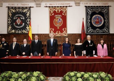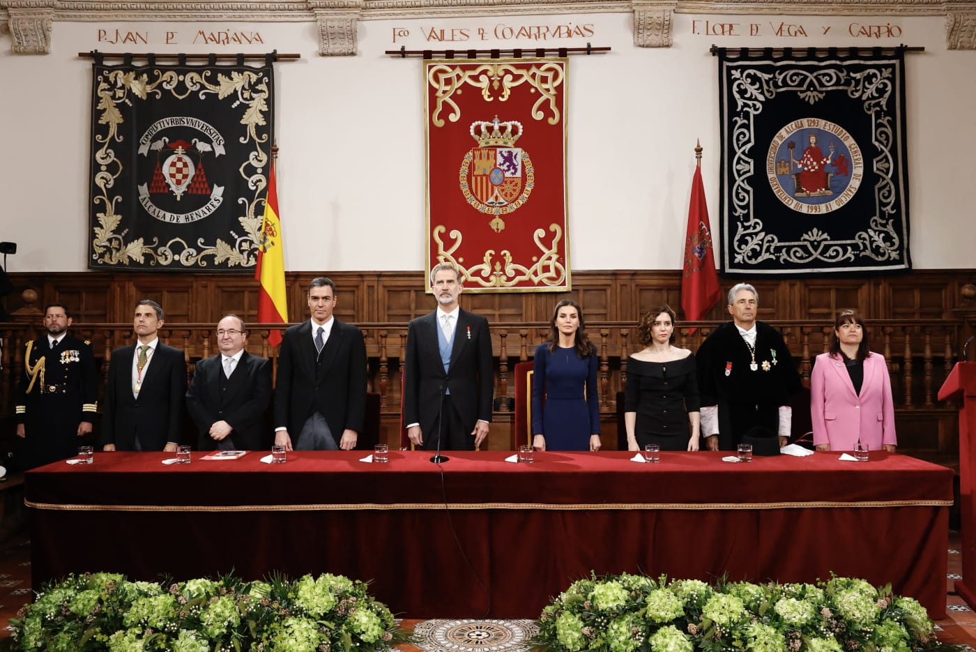 A la entrega han acudido el Presidente del Gobierno, Pedro Sánchez, la presidenta de la Comunidad de Madrid, Isabel Díaz Ayuso, el Ministro de Cultura, Miquel Iceta, el rector de la Universidad de Alcalá, José Vicente Saz, y el alcalde de Alcalá de Henares, Javier Rodríguez Palacios, el vicealcalde, Miguel Ángel Lezcano, entre otras autoridades civiles y militares.