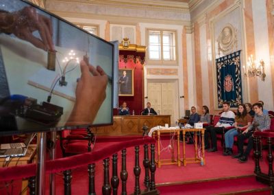En el Salón de Plenos del Ayuntamiento, alumnos del primer curso del Ciclo Formativo de Grado Superior de Automatización y Robótica Industrial del IES Antonio Machado, han estado explicando el diseño de su satélite y la misión que llevarán a cabo el día del lanzamiento. Posteriormente, se ha llevado a cabo la firma del convenio de colaboración entre el Ayuntamiento de Alcalá de Henares, a través de la Concejalía de Transparencia, Innovación Tecnológica y Gobierno Abierto, y el IES Antonio Machado.
