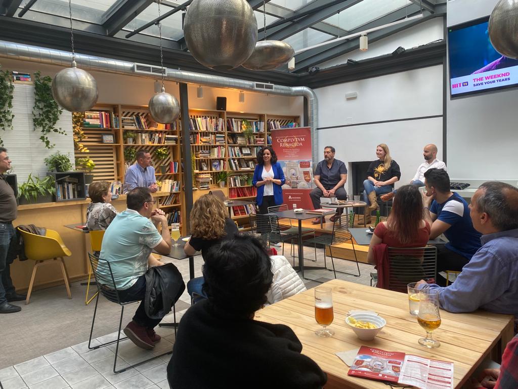 Alcalá de Henares va a rememorar este puente de mayo su pasado romano con la celebración de Complutum Renacida. Esta tarde, se ha celebrado “De cañas con los romanos”, una charla distendida con los especialistas Arantxa Monteagudo, abogada en ejercicio y divulgadora histórica, Javier Moralejo, profesor de la Universidad Autónoma de Madrid, y Sebastián Rascón, técnico municipal del área de Patrimonio Histórico y moderador de la charla.