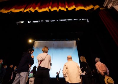 Hoy han tenido lugar las últimas visitas de las Jornadas de Puertas Abiertas del Teatro Salón Cervantes, organizadas como colofón a la programación del Festival de la Palabra 2022 en Alcalá de Henares, y por las que los visitantes han podido conocer espacios como el escenario, los almacenes, los camerinos, la cabina técnica, así como el funcionamiento de tramoya, los telones, los focos, el sonido, su historia y algunos recovecos curiosos.