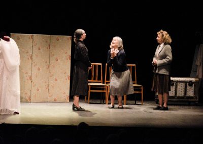 El reparto, formado por Trinidad Caballero, Marta Garzón y Lourdes Hernández, bajo la dirección de Raquel Alonso, traslado a los asistentes a la obra, entre quienes se encontraba la concejala de Cultura, María Aranguren, a las vidas de nuestras madres, abuelas o vecinas, revisando su estilo de vida desde la comedia.