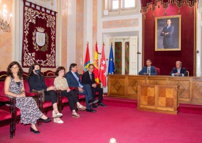 El alcalde de Alcalá de Henares, Javier Rodríguez Palacios, el vicealcalde, Miguel Ángel Lezcano, y el concejal de Mayores, Carlos García Rodríguez, han recibido hoy en el Salón de Plenos del Ayuntamiento a 45 mayores voluntarios que han realizado durante este curso actividades en los Centros Municipales de Mayores de la ciudad, compartiendo sus conocimientos con los socios de los mismos.