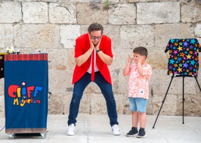 El Antiguo Hospital de Santa María la Rica acogió el viernes el Taller de Magia para niños de 5 a 12 años a cargo de Cliff The Magician, que también tendrá lugar hoy domingo (https://inscripciones.ayto-alcaladehenares.es/alcalá-es-magica/ ), la Plaza de los Irlandeses albergó el espectáculo a cargo de Kayto y Patxi ofreció su show en la Capilla del Oidor.