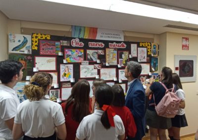 El alcalde, Javier Rodríguez Palacios, y la concejala de Educación, Diana Díaz del Pozo, han asistido esta tarde en la Quinta de Cervantes a la inauguración de la XIX Muestra Escolar de Dibujo y Pintura, una exposición colectiva en la que han participado 1.875 alumnos y alumnas de 23 centros educativos de la ciudad de todos los niveles, desde Escuelas Infantiles y Casas de Niños a Infantil, Primaria y Secundaria.
