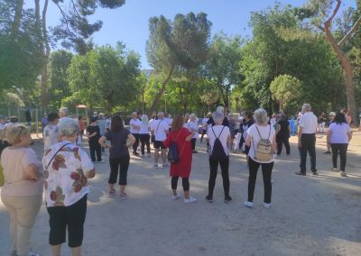 El Parque O’Donnell de Alcalá de Henares ha sido el escenario elegido esta mañana por un centenar de socios y socias de los Centros de Mayores de la ciudad para el disfrute de una Máster Class de baile en línea, actividad incluida dentro de la programación de acciones sociocomunitarias que se están realizando durante este mes de mayo.