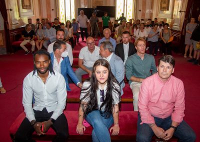 Este mediodía el Salón de Plenos del Ayuntamiento complutense ha acogido la recepción de cerca de una decena de futbolistas alcalaínos que juegan o han jugados en grandes clubes nacionales a internacionales.