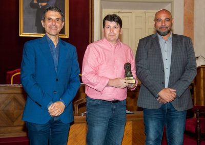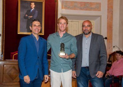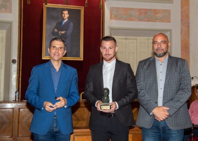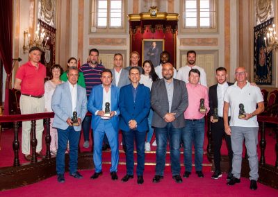 El alcalde, Javier Rodríguez Palacios, y el concejal de Deportes, Julián Cubilla, han recibido a Antonio Acosta, Manuel Alfaro, que no ha podido acudir y cuyo premio ha recogido su hija, Javier Balboa, Alex Fernández, Gabi Moya, Juan Carlos Pedraza, Roberto Román, Jaime Sánchez y Manuel Tena, que han recogido un busto de Cervantes y a continuación han firmado en el libro de honor del Deporte de la ciudad.