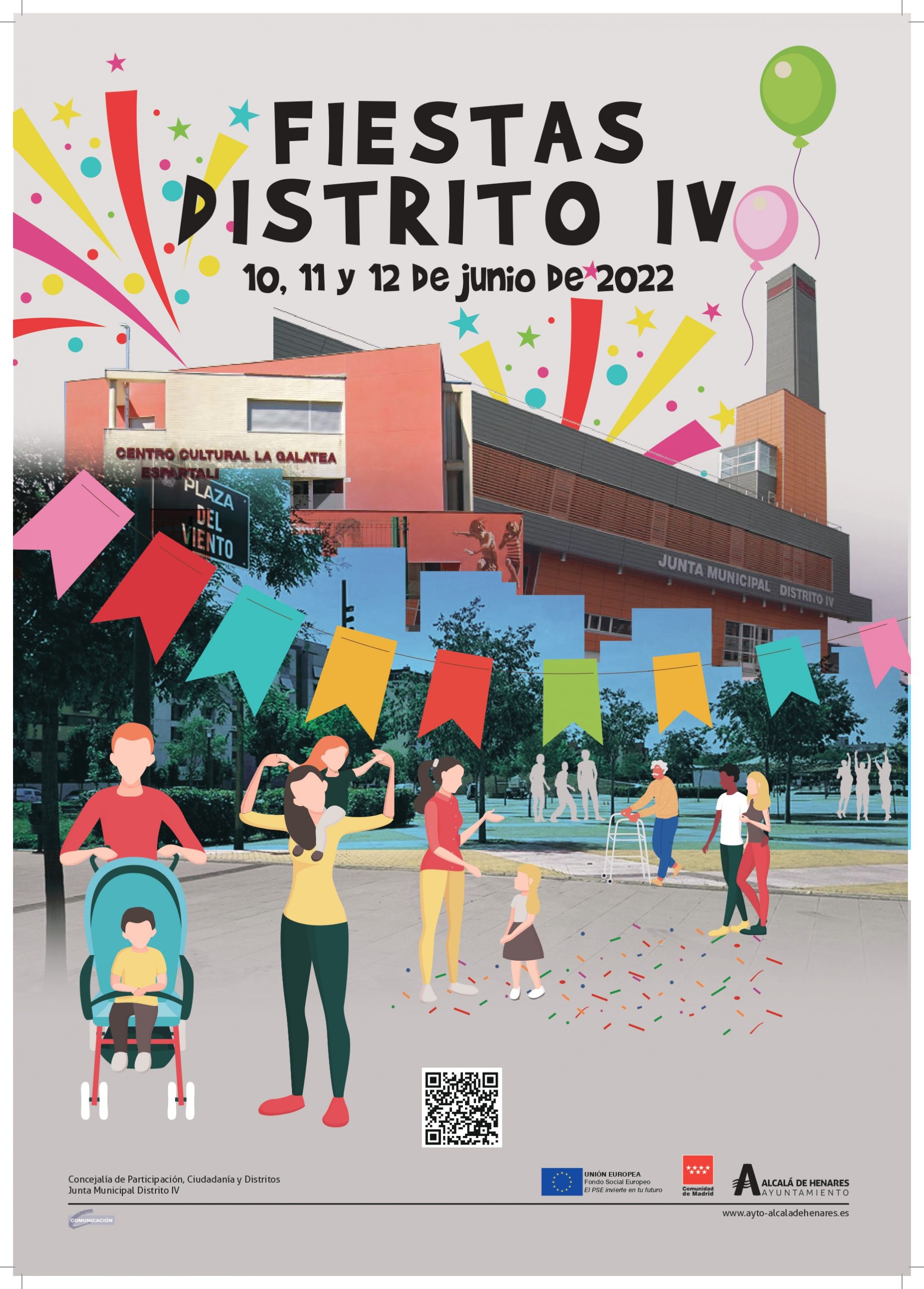 El Distrito IV de Alcalá de Henares se viste de fiesta desde mañana viernes 10 de junio, y hasta el domingo 12, con una amplia variedad de actividades lúdicas que se celebrarán en distintas ubicaciones, como el Centro Cultural Galatea, la Plaza del Viento, la Junta Municipal del Distrito IV y la Plaza donde se ubica la Junta de Distrito.