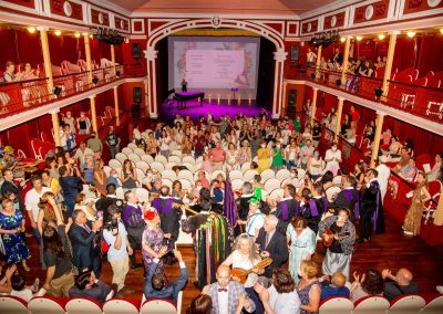 El Teatro Salón Cervantes ha acogido el espectáculo “Américo y Áureo, historia de un enlace” con motivo de la inauguración del Festival. Han participado miembros de las compañías y formaciones alcalaínas que participan en el Festival: La Locandiera, Sol y Tábanos, Estival, Evogía, Teatro La Jara, Coros y Danzas La Nacencia del Centro Extremeño en Alcalá de Henares, Duelos y quebrantos, Banda Sinfónica Complutense, Orquesta Ciudad de Alcalá y Orquesta MDC, y ha contado con la actuación musical de Contrabandeando y la Tuna de la Universidad de Alcalá.