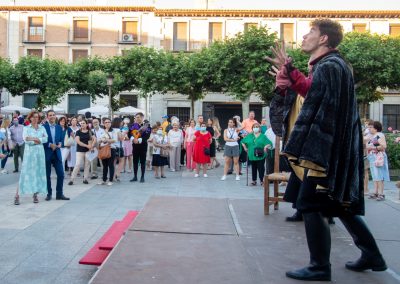 Posteriormente, la acción se ha trasladado a la Plaza de Cervantes, que ha acogido la acción de calle “Isidro 400”, dirigida por Daniel Migueláñez y producida por el Instituto del Teatro de Madrid y la UCM. Se trata de una celebración poética y teatral en torno al patrón madrileño, con mucho de homenaje y otro tanto de sentido del humor, que han podido disfrutar multitud de alcalaínos.