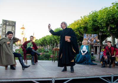 El Teatro Salón Cervantes ha acogido el espectáculo “Américo y Áureo, historia de un enlace” con motivo de la inauguración del Festival. Han participado miembros de las compañías y formaciones alcalaínas que participan en el Festival: La Locandiera, Sol y Tábanos, Estival, Evogía, Teatro La Jara, Coros y Danzas La Nacencia del Centro Extremeño en Alcalá de Henares, Duelos y quebrantos, Banda Sinfónica Complutense, Orquesta Ciudad de Alcalá y Orquesta MDC, y ha contado con la actuación musical de Contrabandeando y la Tuna de la Universidad de Alcalá.