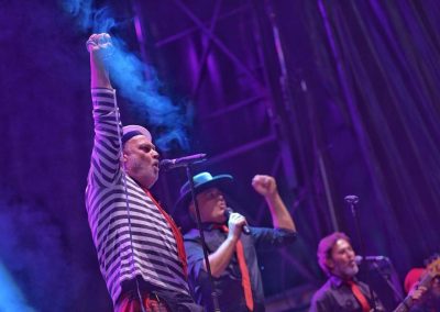 Pablo Carbonell, Pepe Begines y el resto de los componentes de sus respectivas bandas deleitaron al numeroso público que asistió a la actuación con sus conocidos sonidos de los 80 y 90.