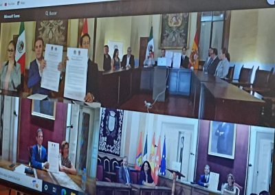 El Salón de Plenos del Ayuntamiento de Alcalá de Henares ha sido el escenario del acto telemático para la firma del memorando de entendimiento para el hermanamiento entre la ciudad complutense y la ciudad mexicana de Guanajuato. Un acto en el que participaron el alcalde de Alcalá de Henares, Javier Rodríguez Palacios, las tenientes de alcalde María Aranguren y Diana Díaz del Pozo, el edil Ricardo González Parra y otros miembros de la Corporación Municipal.