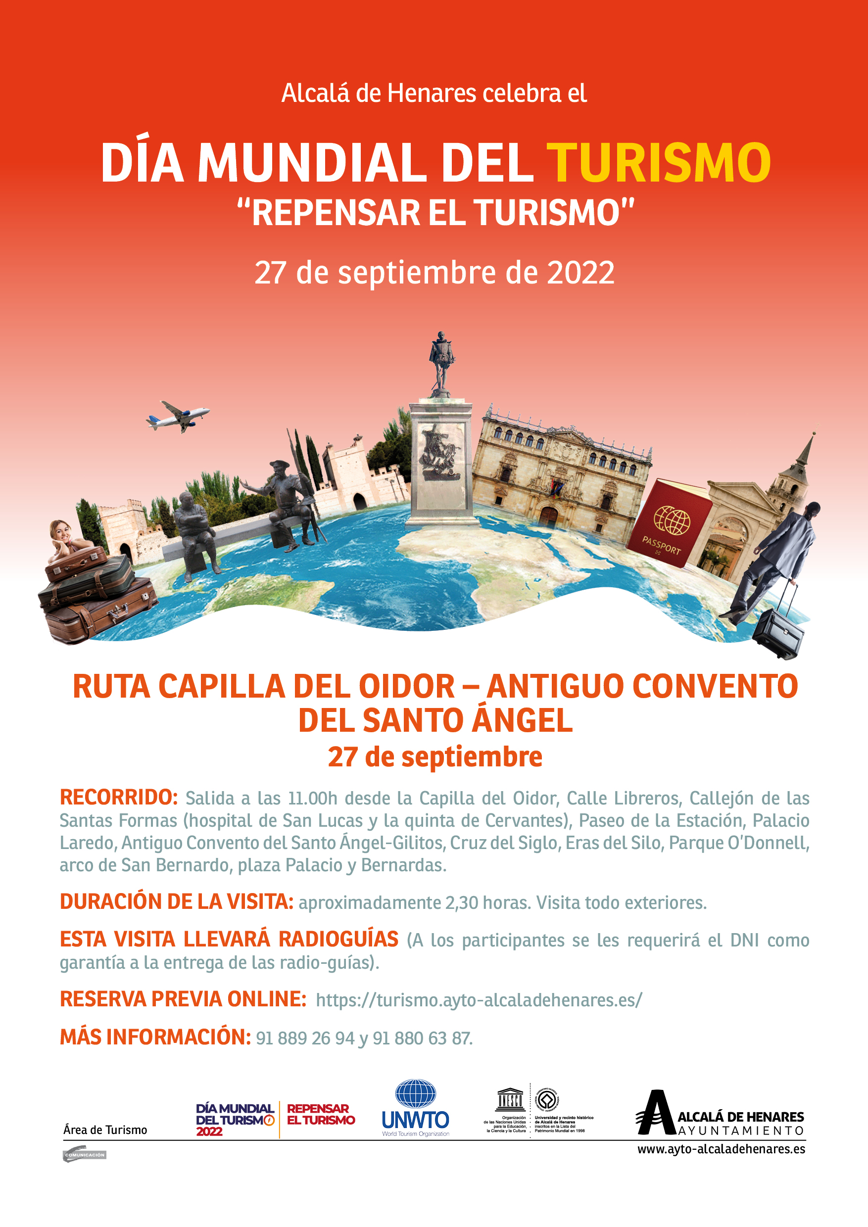 Alcalá de Henares se sumará el próximo 27 de septiembre a la celebración del Día Mundial del Turismo. Este año, como novedad, la ciudad de Alcalá ofrecerá ese día una visita guiada basada en una nueva forma de percibir la ciudad más innovadora, más sostenible y accesible.