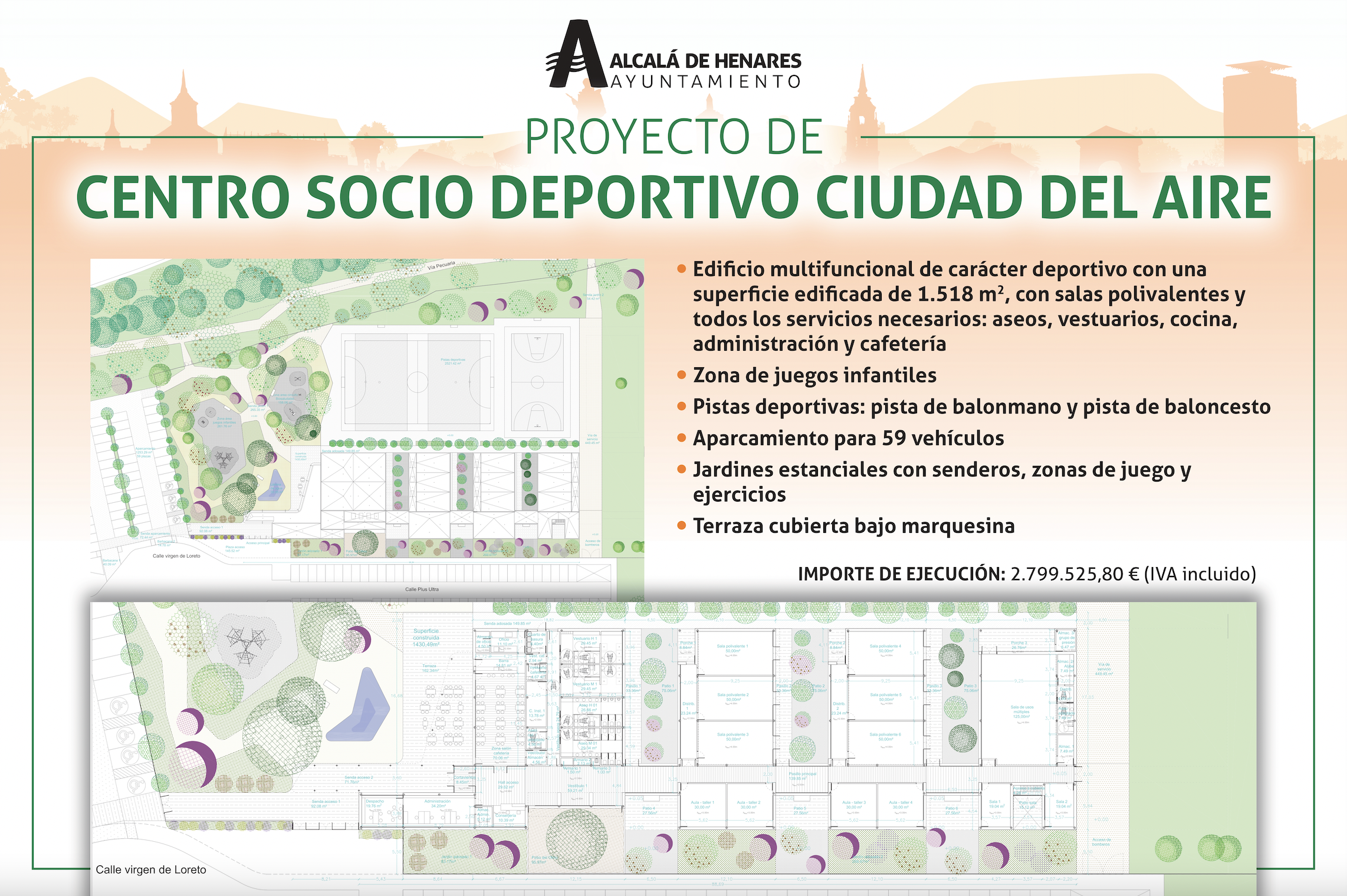 El importe de licitación del proyecto alcanza los 2.799.525,80€ (IVA incluido) y el plazo previsto para la ejecución de las obras será de 11 meses.