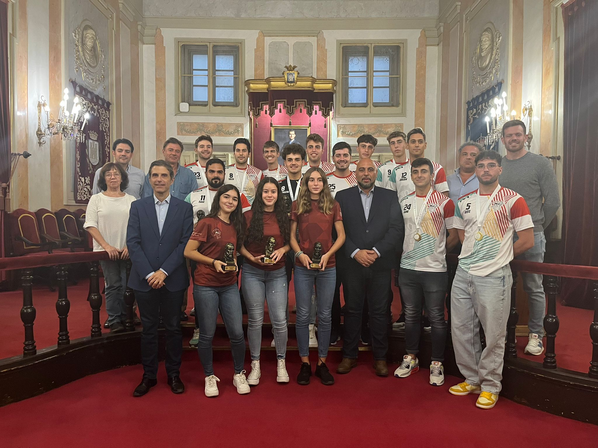 Deportistas del CD Iplacea y el Balonmano Playa Alcalá, recibidos en el Salón de Plenos del Ayuntamiento