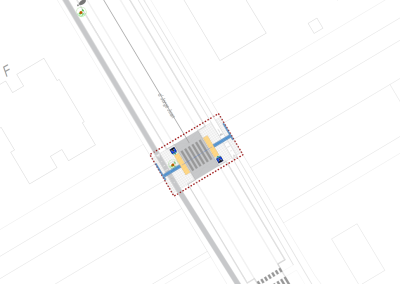 • En el primer paso de la avenida de Europa (junto al IES Francisca Pedraza) se modificará la mediana para dotar de refugio de 180 cm al paso de peatones quedando un ancho de calzada en este punto de 6,60 m., buscando mejorar la visibilidad del peatón frente al conductor adelantando la acera de manera que se quede en línea con la banda de aparcamiento.