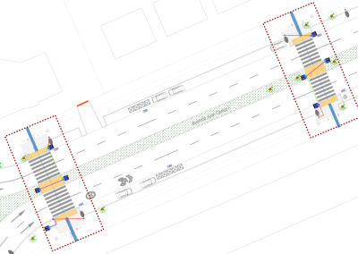 • Mejora en la movilidad y la seguridad de los viandantes en la Avenida Juan Carlos I mediante la modificación de 4 pasos de peatones: se aumenta así la seguridad de los viandantes que desembocan en la Avenida Juan Carlos (Avenida de Europa, calle de Francisco Alonso y calle Manuel Iradier). Con estas modificaciones se mejora la visibilidad del peatón frente al conductor, incorporando señalización vertical tipo LED, un proyector de iluminación y un detector de presencia para la iluminación del paso. Se dotará a la acera modificada de un nuevo pavimento podotáctil de acuerdo a la actual normativa de accesibilidad.