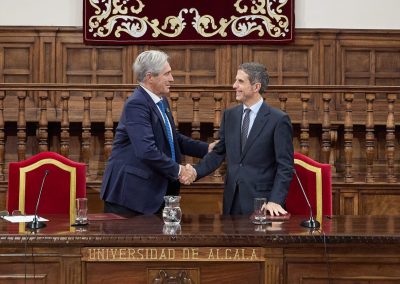 El rector de la Universidad de Alcalá (UAH), José Vicente Saz, y el alcalde de Alcalá de Henares, Javier Rodríguez Palacios, han firmado hoy, en el Paraninfo de la UAH, un protocolo para la creación de la Comisión Conmemorativa del 25 Aniversario de la Declaración de la Universidad y Recinto Histórico de Alcalá de Henares como Patrimonio Mundial entre ambas instituciones.