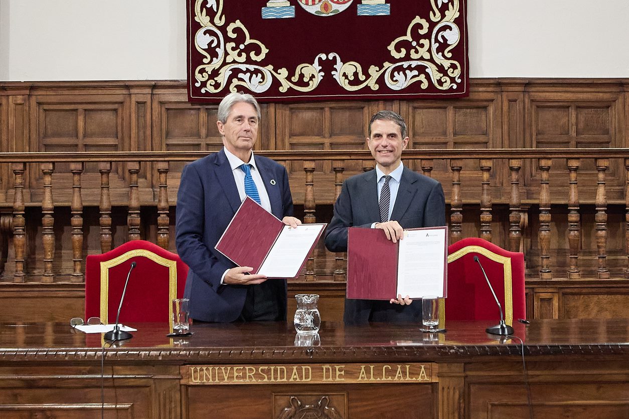 El rector de la Universidad de Alcalá (UAH), José Vicente Saz, y el alcalde de Alcalá de Henares, Javier Rodríguez Palacios, han firmado hoy, en el Paraninfo de la UAH, un protocolo para la creación de la Comisión Conmemorativa del 25 Aniversario de la Declaración de la Universidad y Recinto Histórico de Alcalá de Henares como Patrimonio Mundial entre ambas instituciones.