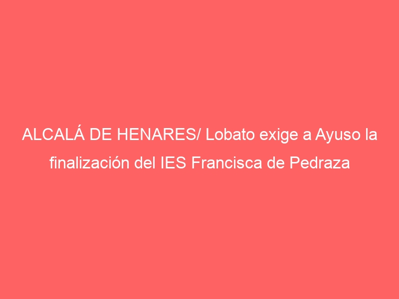 El alcalde solicita al consejero de Educación una reunión para que informe al Ayuntamiento y a las familias de la situación del IES Francisca de Pedraza – Ayto. Alcalá de HenaresPor su parte, Lobato volvió a poner de manifiesto el compromiso de los socialistas para que este centro se termine cuanto antes: “es absolutamente ineficaz y perjudicial para los escolares la construcción por fases que sistemáticamente lleva a cabo el gobierno de Ayuso en los centros públicos madrileños”.