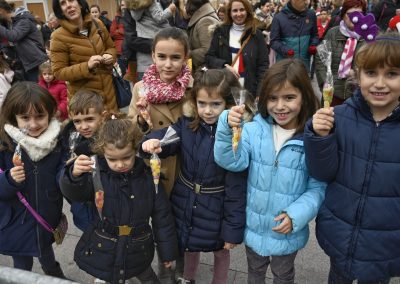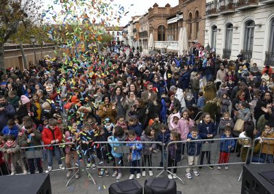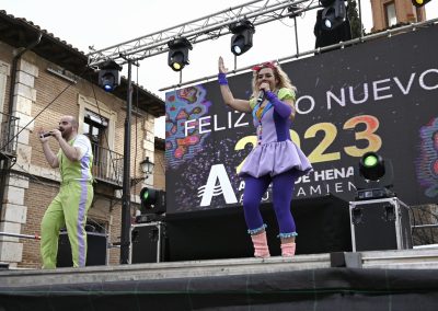 La toma anticipada de las uvas ha estado precedida de animación infantil, protagonizada por la nueva Comparsa de Gigantillos, un pasacalles infantil y el reparto de chuches, por parte de las peñas de Alcalá.