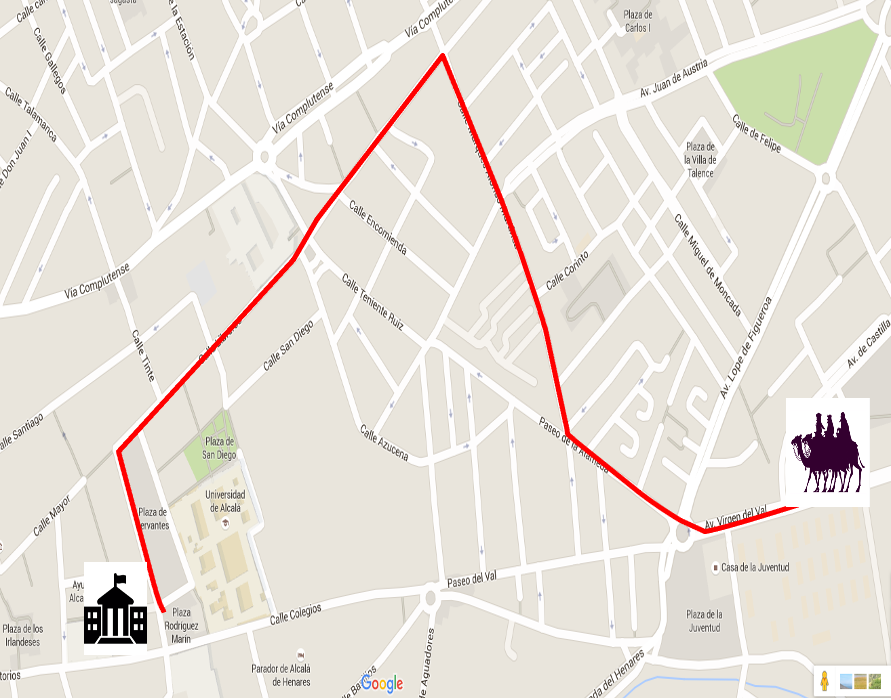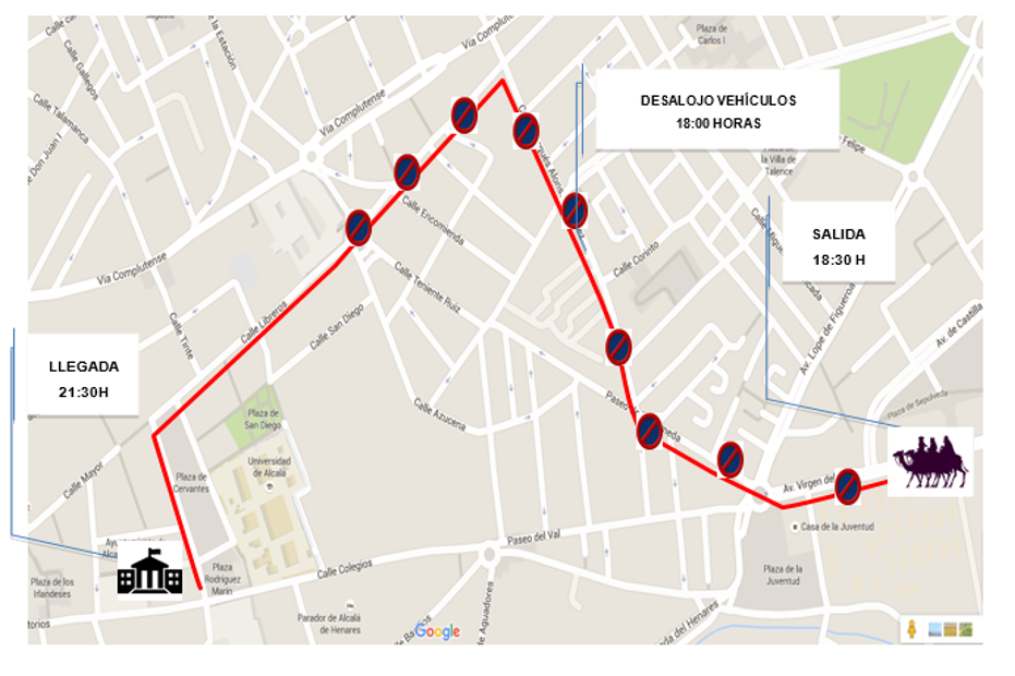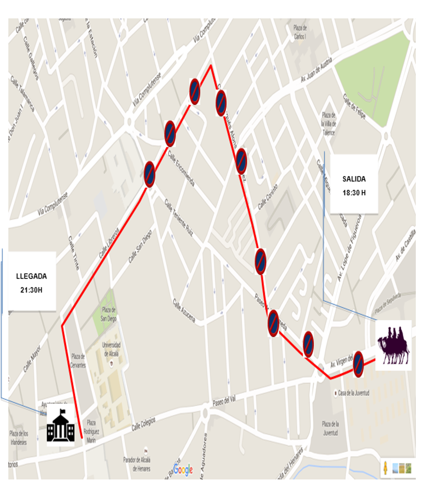 La Cabalgata arrancará a las 18:30 horas de la Avd. Del Val (Ciudad Deportiva) – Glorieta de la Juventud – Paseo de la Alameda – Calle del Marqués de Alonso Martínez – Avd. De Guadalajara – Plaza de los Mártires – Calle Libreros – Plaza de Cervantes (Ayuntamiento).
