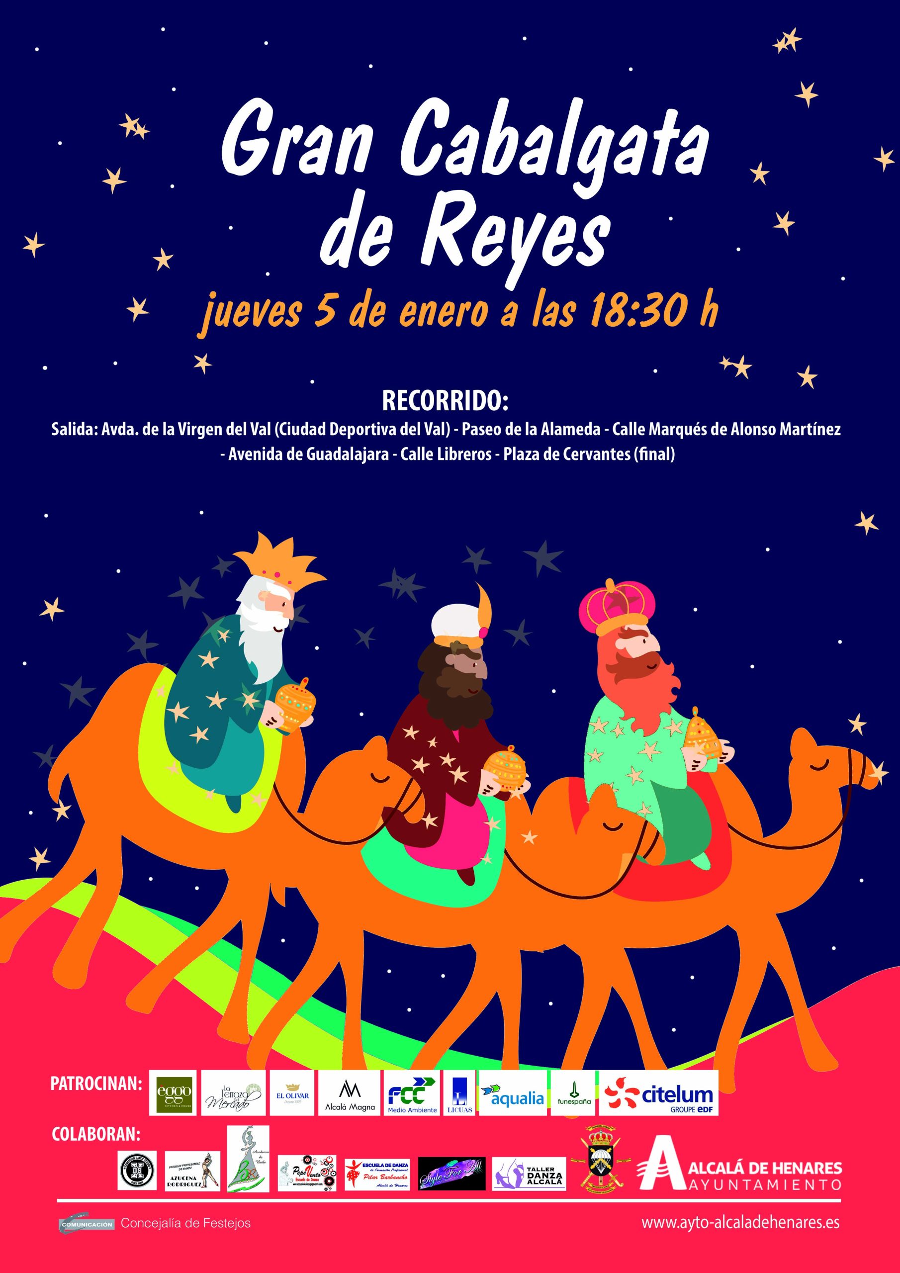 El 5 de enero de 2023 volveremos a disfrutar de la tradicional Gran Cabalgata de Reyes por las calles de Alcalá de Henares, con salida en la avenida Virgen del Val a partir de las 18:30 horas y un recorrido que discurrirá por el Paseo de la Alameda, la calle Marqués Alonso Martínez, la avenida de Guadalajara, la calle Libreros y la Plaza de Cervantes, donde Sus Majestades los Reyes Magos de Oriente darán unas palabras a los niños, niñas y al conjunto de la ciudadanía complutense.
