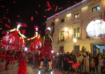 Además, la Gran Cabalgata de Reyes contó con dos grandes pasacalles compuestos por grupos de más de 25 personas denominados “Universe”, una representación del Universo, los planetas y las constelaciones, y “Revue de Rue”, una propuesta vinculada con el Cabaret, las acrobacias y una gran estructura con forma de Torre Eiffel con un piano aéreo.