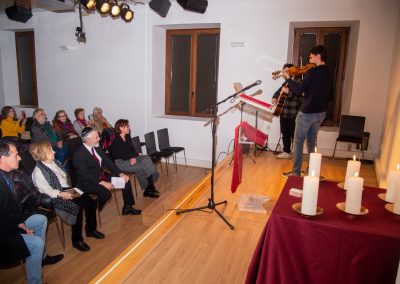 El homenaje artístico del acto ha corrido a cargo de la Orquesta Ciudad de Alcalá con los intérpretes Alberto Prieto (violín) e Iñaki Urbina Medina (corno inglés), que han interpretado “Dance me to the End of Love”, de Leonard Cohen, canción inspirada en una historia de dos supervivientes del Holocausto y escrita por el artista judío Leonard Cohen, y el tema principal de la banda sonora de La Lista de Schindler (John Williams).