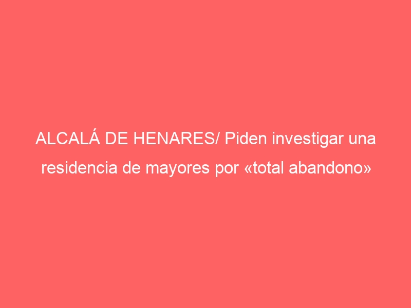ALCALÁ DE HENARES/ Piden investigar una residencia de mayores por «total abandono»