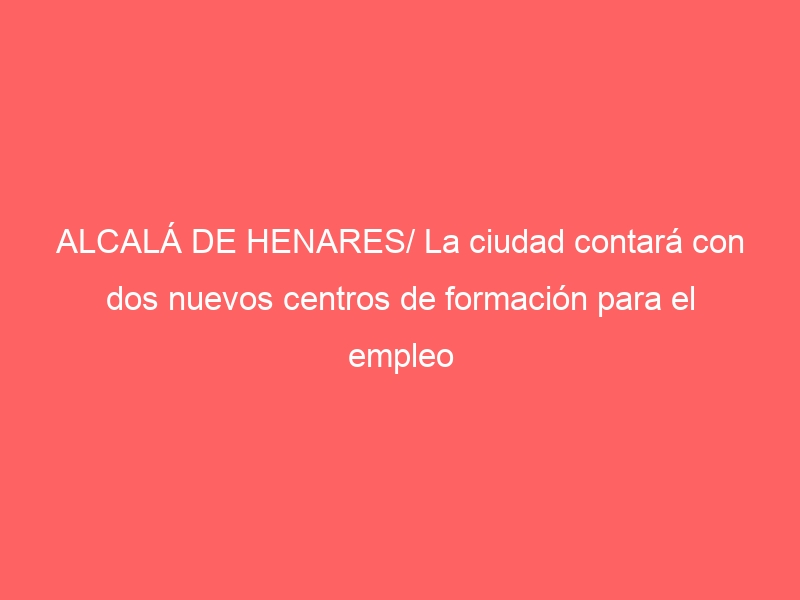ALCALÁ DE HENARES/ La ciudad contará con dos nuevos centros de formación para el empleo
