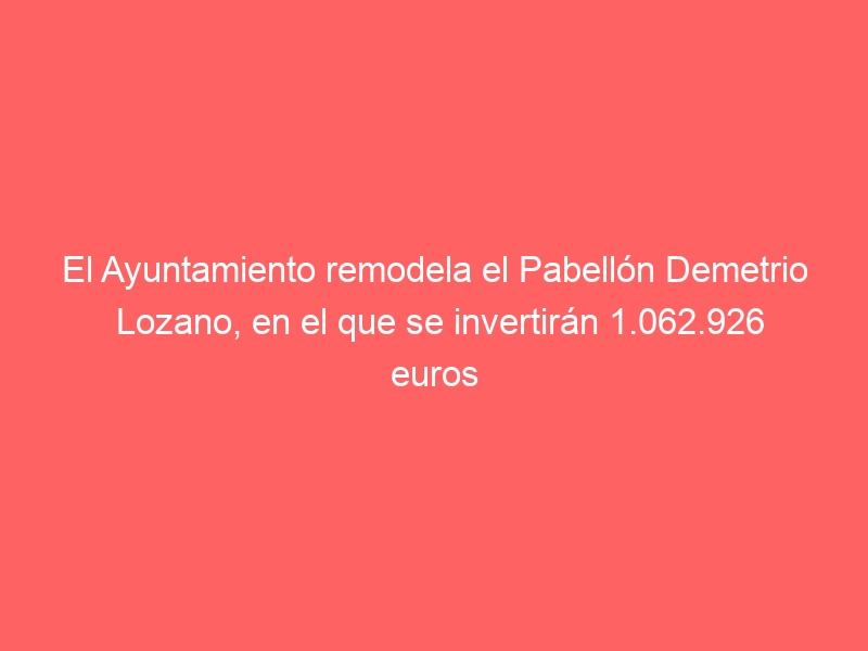 El Ayuntamiento remodela el Pabellón Demetrio Lozano, en el que se invertirán 1.062.926 euros