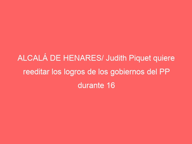 ALCALÁ DE HENARES/ Judith Piquet quiere reeditar los logros de los gobiernos del PP durante 16 años