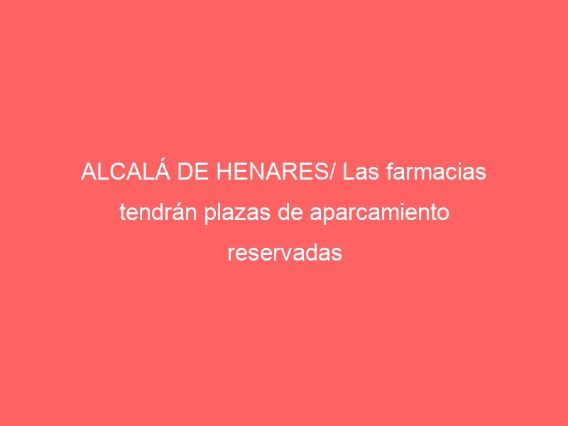 ALCALÁ DE HENARES/ Las farmacias tendrán plazas de aparcamiento reservadas