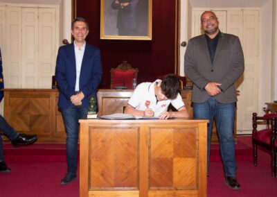 A continuación se detallan los nombres y méritos deportivos de los deportistas que hoy han sido recibidos en el Salón de Plenos del Ayuntamiento y que han dejado su nombre en el Libro del Deporte de la ciudad: