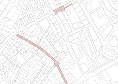 • El tramo final de la calle Talamanca, donde habrá coexistencia de peatones y vehículos de residentes y carga y descarga en horario establecido.