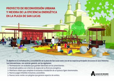 El Ayuntamiento de Alcalá de Henares va a llevar a cabo la remodelación de la plaza de San Lucas, con el fin de que este espacio tenga mayor vida, y para ello se la dotará de una zona de juegos y se instalará un quiosco y distintas pérgolas para dotar de sombra a esta plaza en la que, además, se creará un acceso directo para mejorar su conexión con la zona norte de la ciudad.