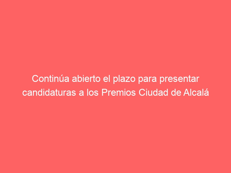 La entrada Continúa abierto el plazo para presentar candidaturas a los Premios Ciudad de Alcalá se publicó primero en Ayuntamiento de Alcalá de Henares.