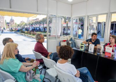 Ayer domingo, 16 de abril, la Feria contó por la mañana con la presencia de Javier Sierra, escritor y periodista, entre los autores españoles más vendidos de Estados Unidos y ganador del Premio Planeta 2017 por “El Fuego Invisible”. Por la tarde, los lectores pudieron conocer a Marta Sanz, doctora en Filología y finalista del Premio Nadal en 2006. En el marco del Festival Krunch, visitó la ciudad David Lloyd, autor de V de Vendetta, que también firmó ayer ejemplares de su obra.