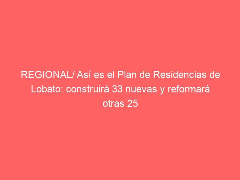 REGIONAL/ Así es el Plan de Residencias de Lobato: construirá 33 nuevas y reformará otras 25