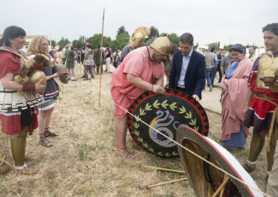 El alcalde de Alcalá de Henares, Javier Rodríguez Palacios; la concejala de Cultura, María Aranguren; la concejala de Educación, Diana Díaz del Pozo; la concejala de Comercio, Rosa Gorgues, y otros miembros de la corporación municipal han podido observar las maniobras realizadas por diferentes asociaciones de recreación histórica.