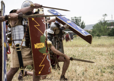 Además, en el campamento romano se pueden ver las distintas actividades que llevaban a cabo los romanos en artesanía, como trabajo con cuero, barro o hierro forjado, o conocer cómo era una taberna de aquella época. Esta tarde, los mejores gladiadores del imperio se enfrentarán en la tierra de Complutum.
