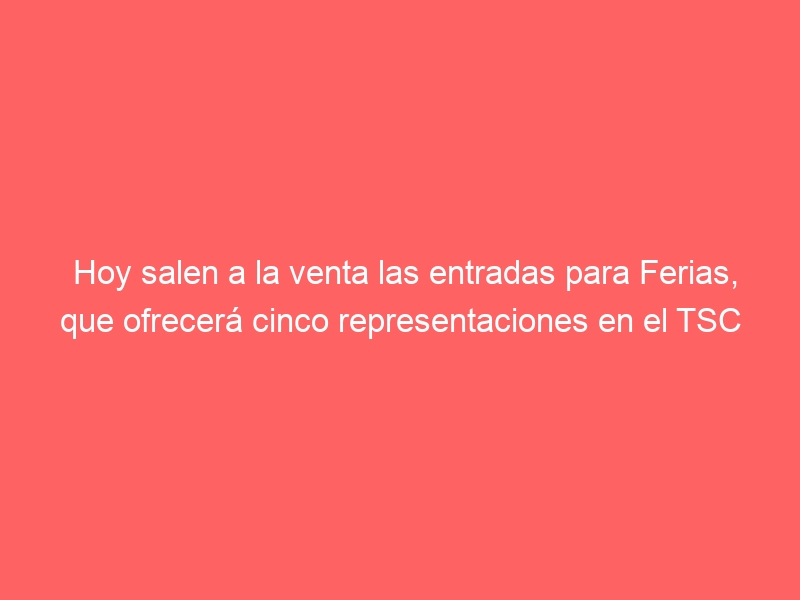 Hoy salen a la venta las entradas para Ferias, que ofrecerá cinco representaciones en el TSC