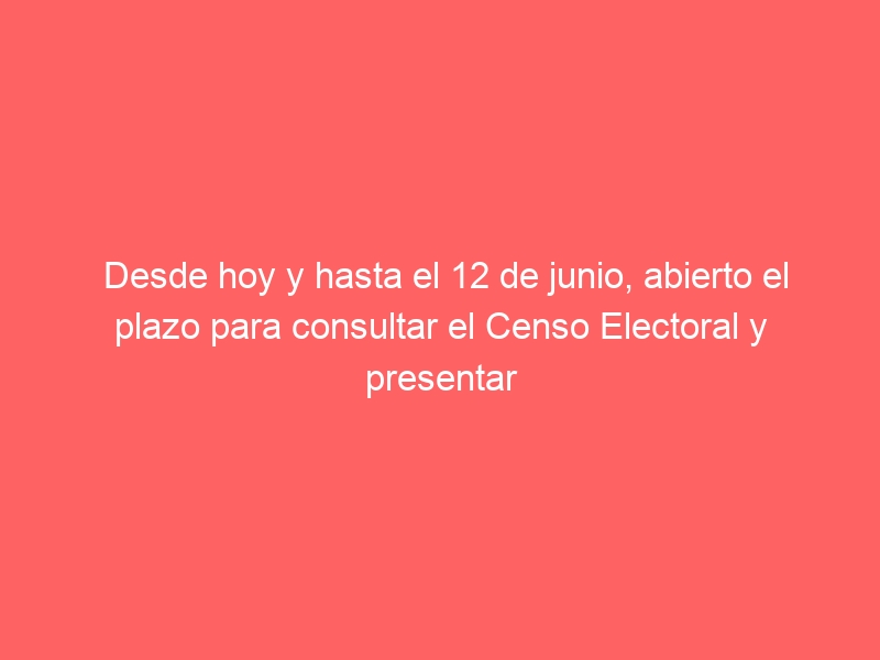 Desde hoy y hasta el 12 de junio, abierto el plazo para consultar el Censo Electoral y presentar reclamaciones