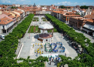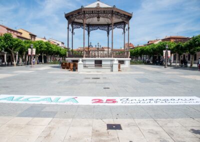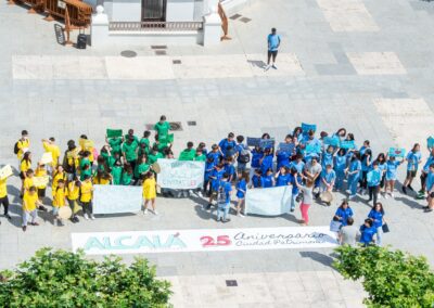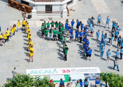 Los 4 grupos han confluido en la Plaza de Cervantes, donde han realizado varias actividades: han formado un 1998-2023 con figuras humanas y en el suelo con una pancarta que se ha realizado desde Participación Ciudadana, con el logo de “Alcalá de Henares, 25 Aniversario Ciudad Patrimonio”. Además, varios alumnos han hecho un elogio al Patrimonio Histórico de Alcalá (en español e inglés) y han presentado tres conclusiones del estudio estadístico que han realizado sobre el turismo en Alcalá de Henares. También han realizado “el baile del patrimonio”.